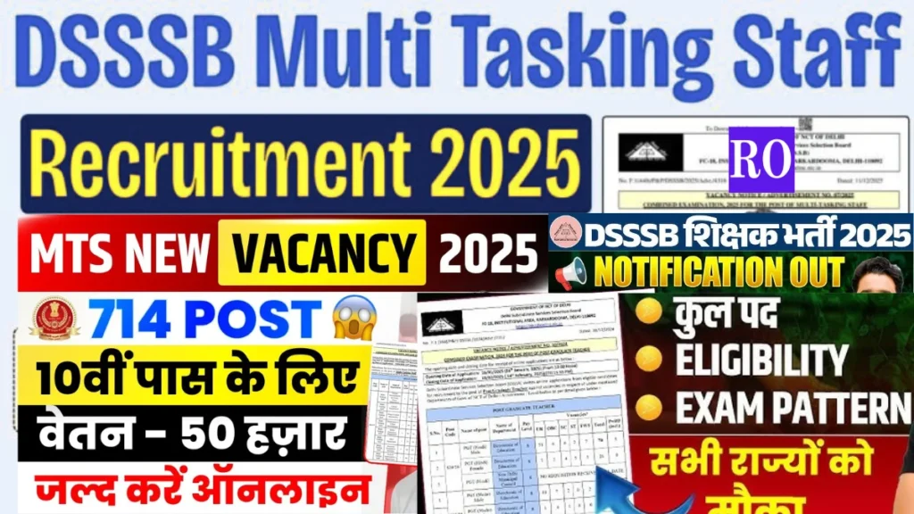 10वीं पास के लिए सरकारी नौकरी 2025 – (DSSSB) ने मल्टी टास्किंग स्टाफ (एमटीएस) के 714 रिक्त पदों पर भर्ती | DSSSB MTS Recruitment 2025